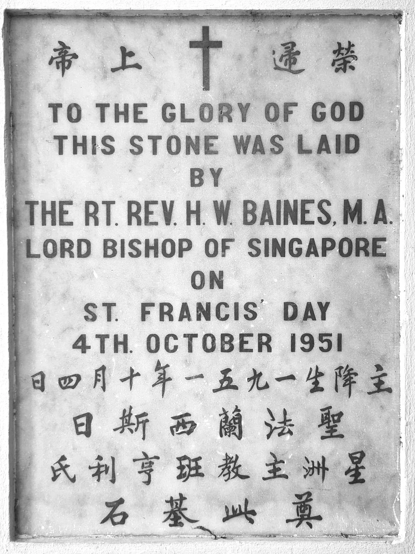 Bishop Baines - Lord Bishop of Singapore, Rev. Guok and guests at the laying of the corner stone on St Francis Day, 4th Oct 1951 . Church of the True Light Church new building.